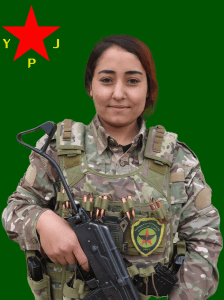 La compagna Canda Cûdi era originaria della città di Girê Sipî (Til Ebyad). Quando lo stato turco ha occupato la sua casa, ha deciso di unirsi ai ranghi delle YPJ. Ha trasformato la sua rabbia nella promessa di vendicarsi dell’occupazione della sua terra. La compagna Canda era profondamente legata ai valori della sua comunità. Essendo madre di due figli, aveva assunto compiti rivoluzionari con la consapevolezza di creare un futuro dignitoso per tutti i bambini del suo Paese. In un breve periodo di tempo ha sviluppato un atteggiamento rivoluzionario, acquisito conoscenze sia nell’addestramento militare che ideologico ed è stata in prima linea contro l’invasione dello Stato turco.